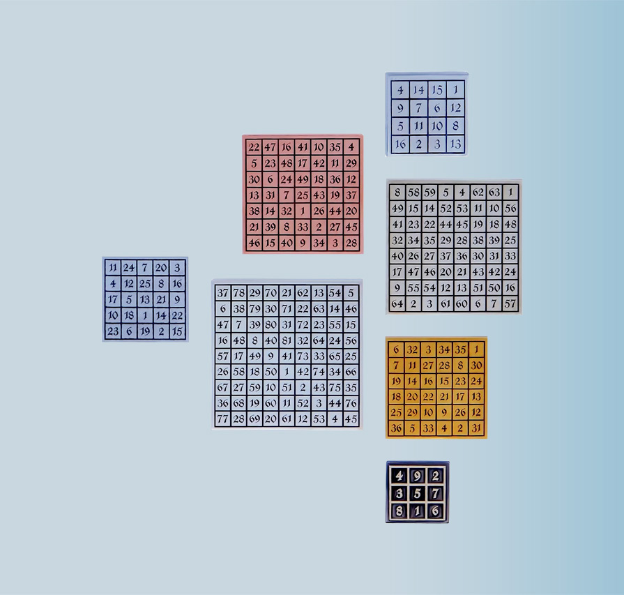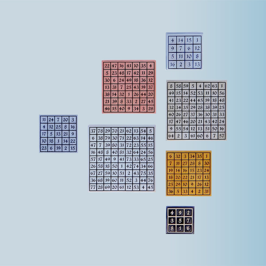 These images have taken on different appearances, but in their primordial form they are connected to various natural numbers, geometrical primitives, philosophical categories, and sacred names. These concepts are represented in this collection and are crafted in several metals selected for each piece.